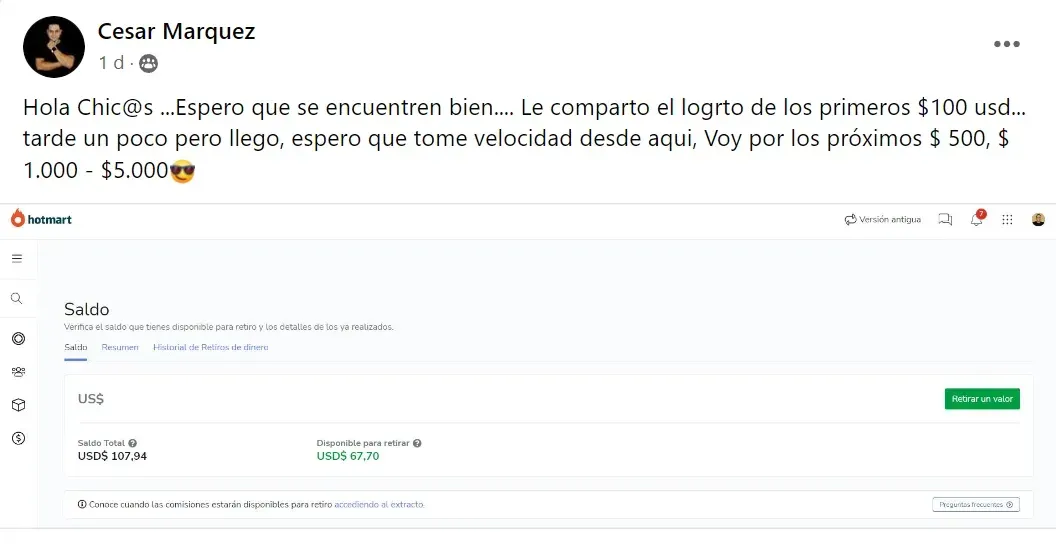Reconocimiento de Hotmart por hacer más de 1 millón de dólares en la plataforma!